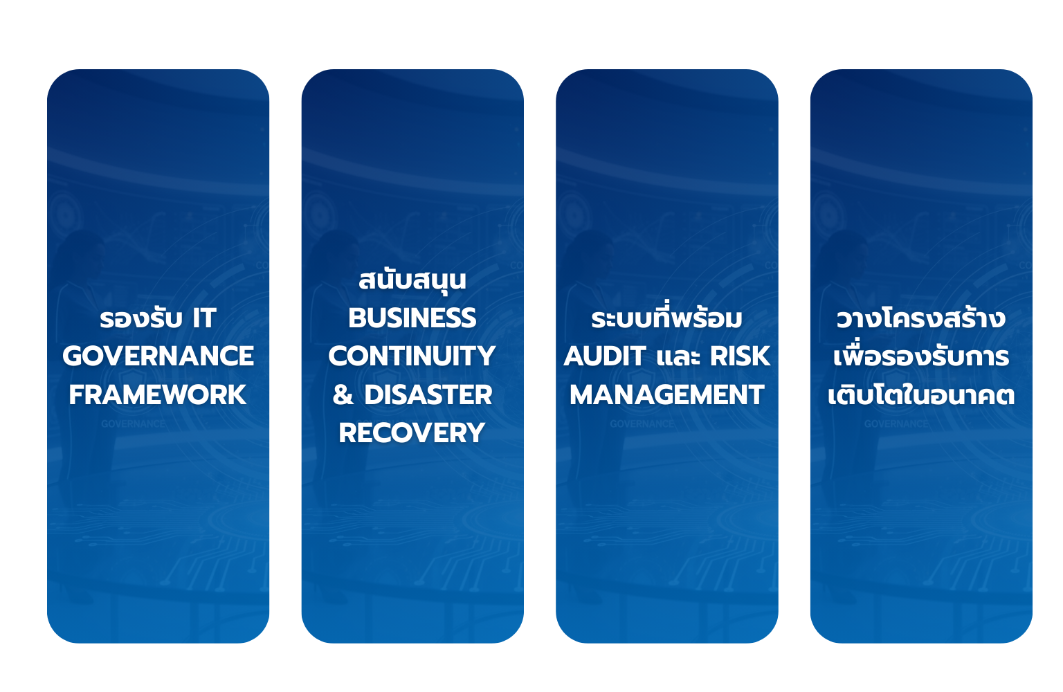 มาตรฐาน ความน่าเชื่อถือ และความต่อเนื่องทางธุรกิจเราออกแบบโครงสร้างพื้นฐานและระบบความปลอดภัยให้สอดคล้องกับมาตรฐานสากล พร้อมรองรับข้อกำหนดด้าน Compliance ขององค์กรขนาดใหญ่